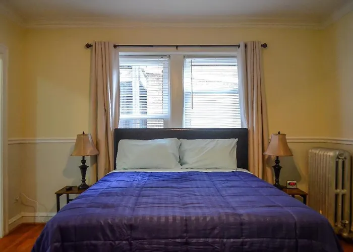 Entre as outras instalações estão microondas, um frigorífico e forno, fornecidos para auto-serviço. Fica a cerca de 5 minutos a pé da estação de metro de Irving Park.